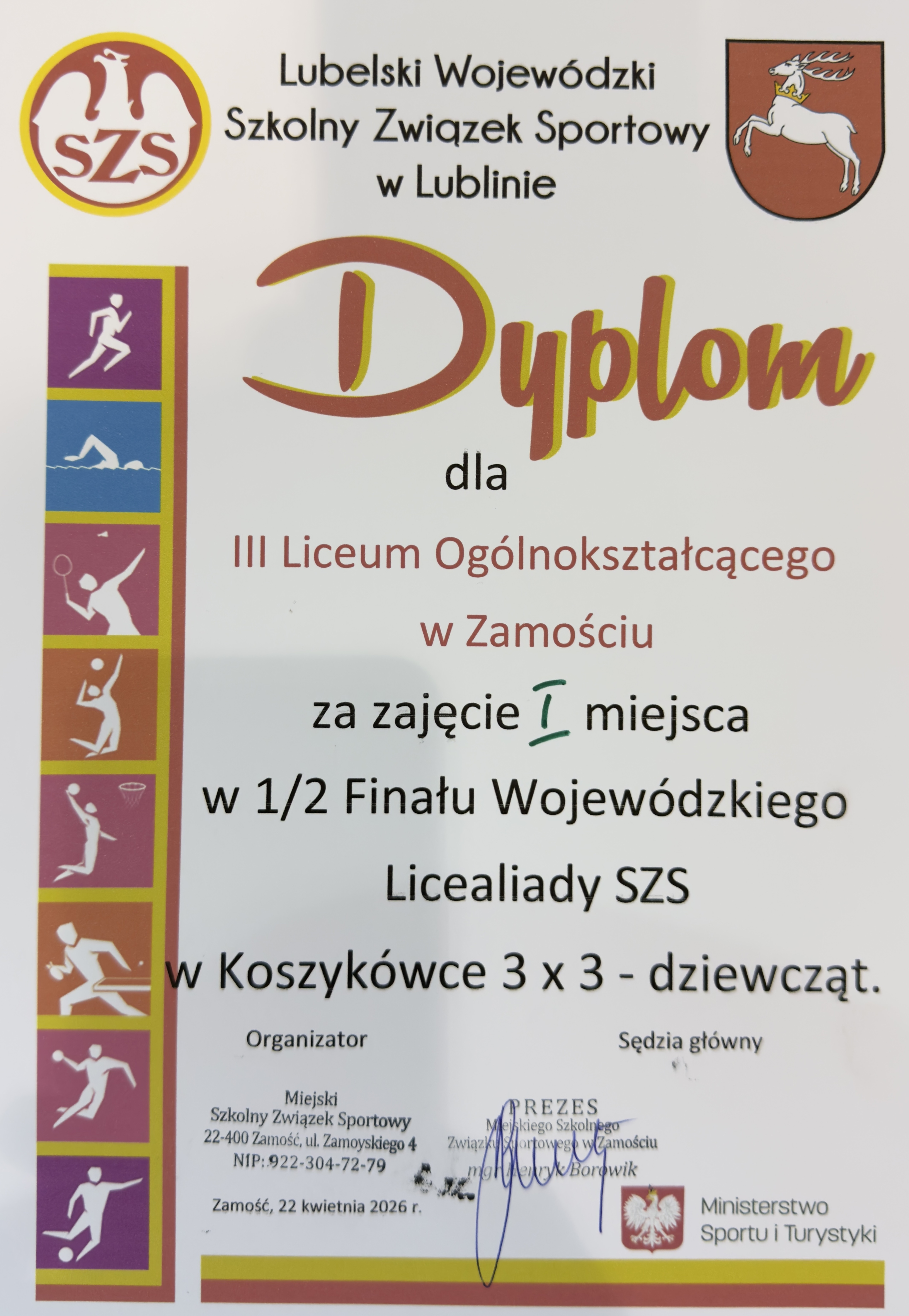 Finał licealiady wojewódzkiej odbędzie się 28 maja 2026 r. w hali sportowej III Liceum Ogólnokształcącego im. Cypriana Kamila Norwida w Zamościu.