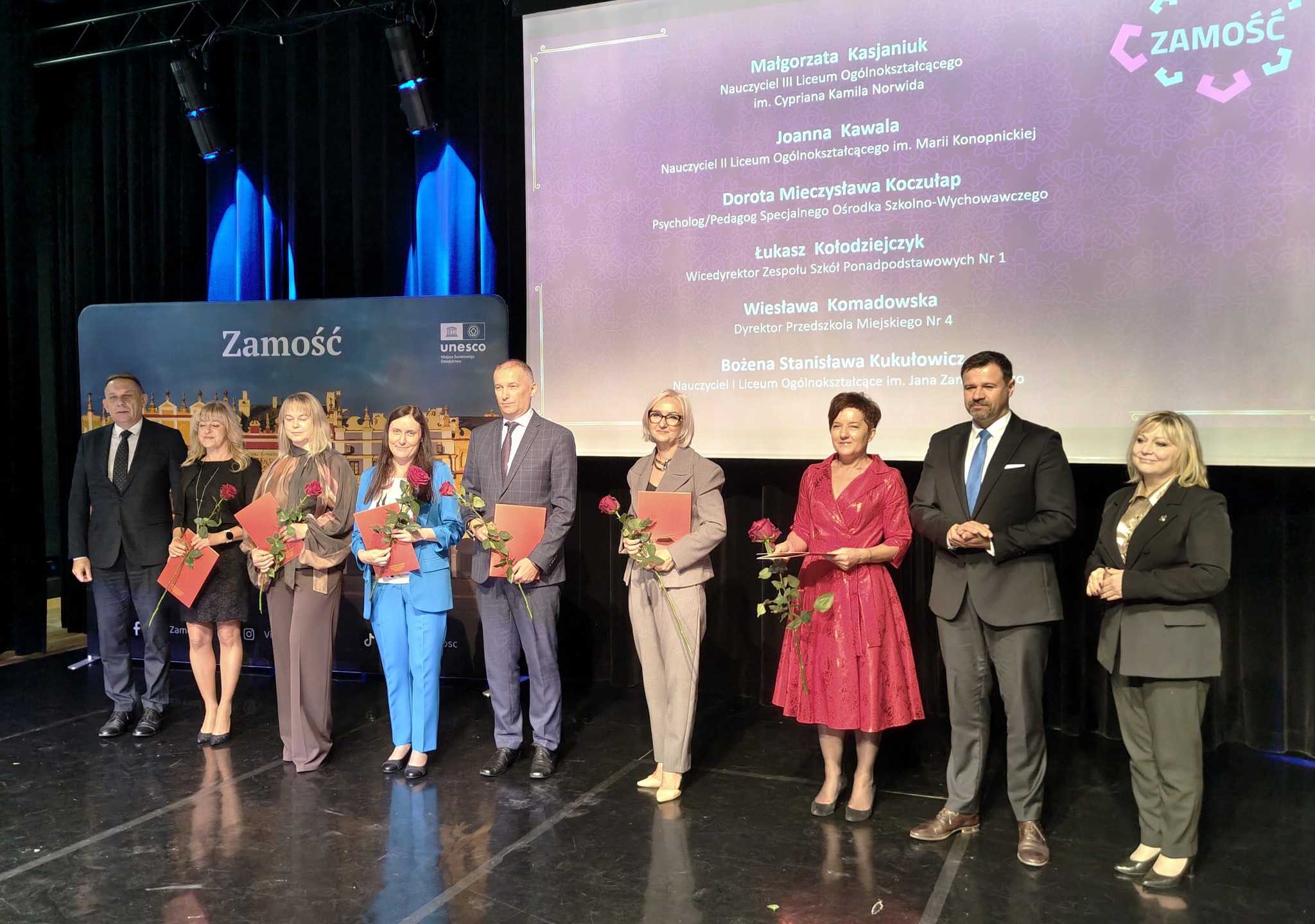 17 października 2025 r. w sali Zamojskiego Domu Kultury odbyła się uroczystość wręczenia nagród Prezydenta Miasta Zamość dla nauczycieli i pracowników oświaty za wybitne osiągnięcia dydaktyczne, wychowawcze oraz zaangażowanie w życie szkolnych społeczności.