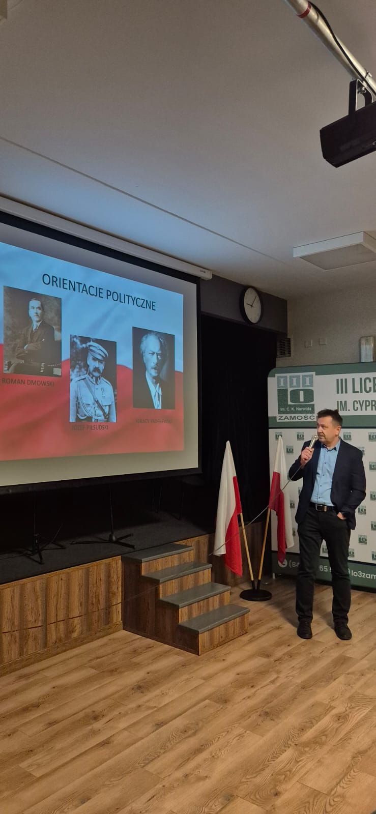 W dniu 6 listopada 2025 r. w naszej szkole odbył się cykl wykładów dla wszystkich klas pod tytułem „Drogi do niepodległości”, zorganizowany z okazji 107. rocznicy odzyskania przez Polskę niepodległości a prowadzonych przez pana Zbigniewa Kordyacznego.