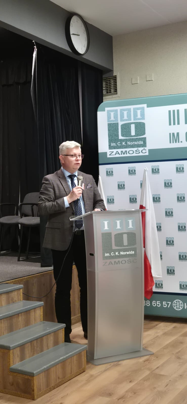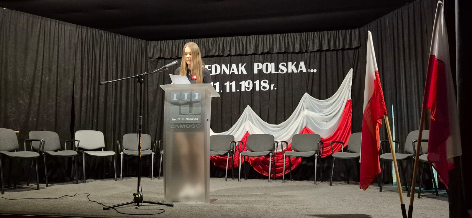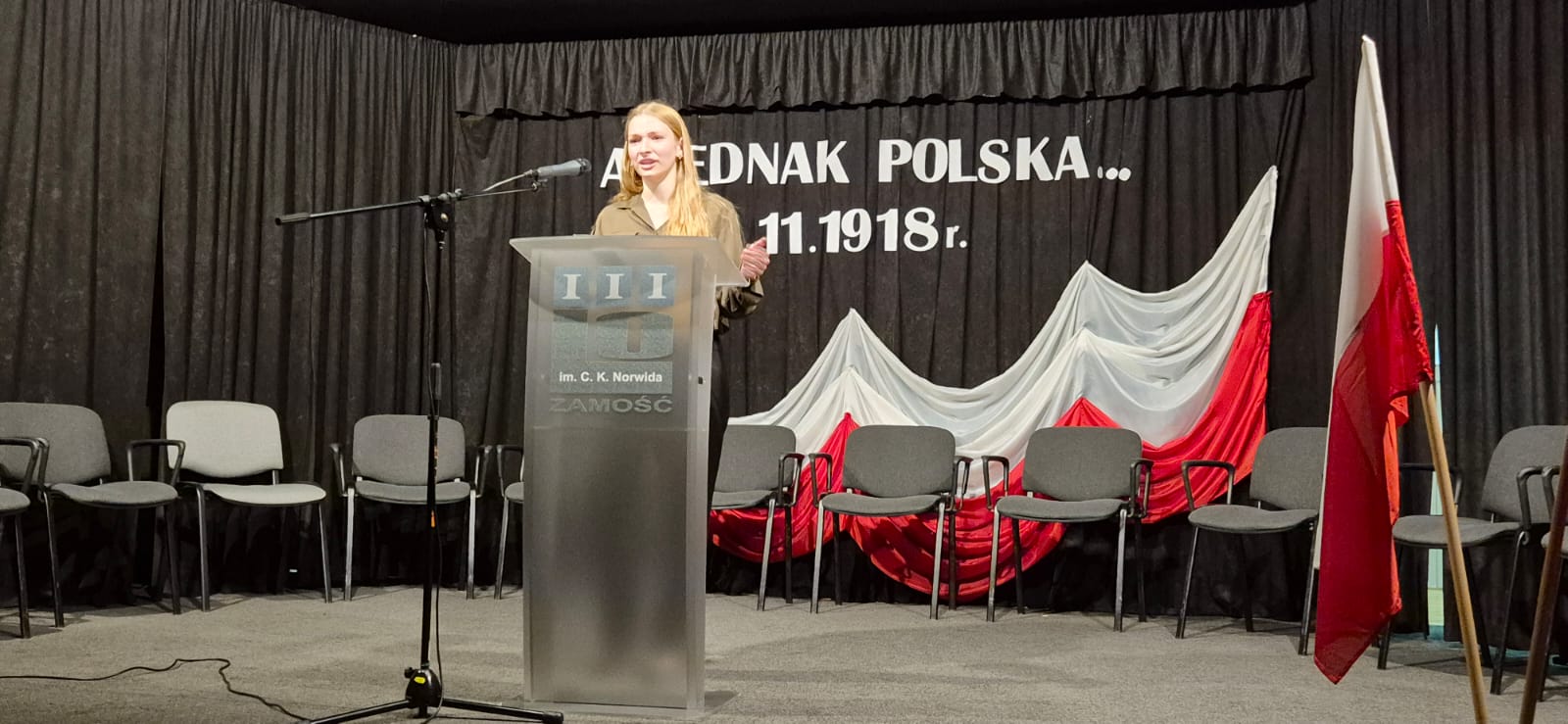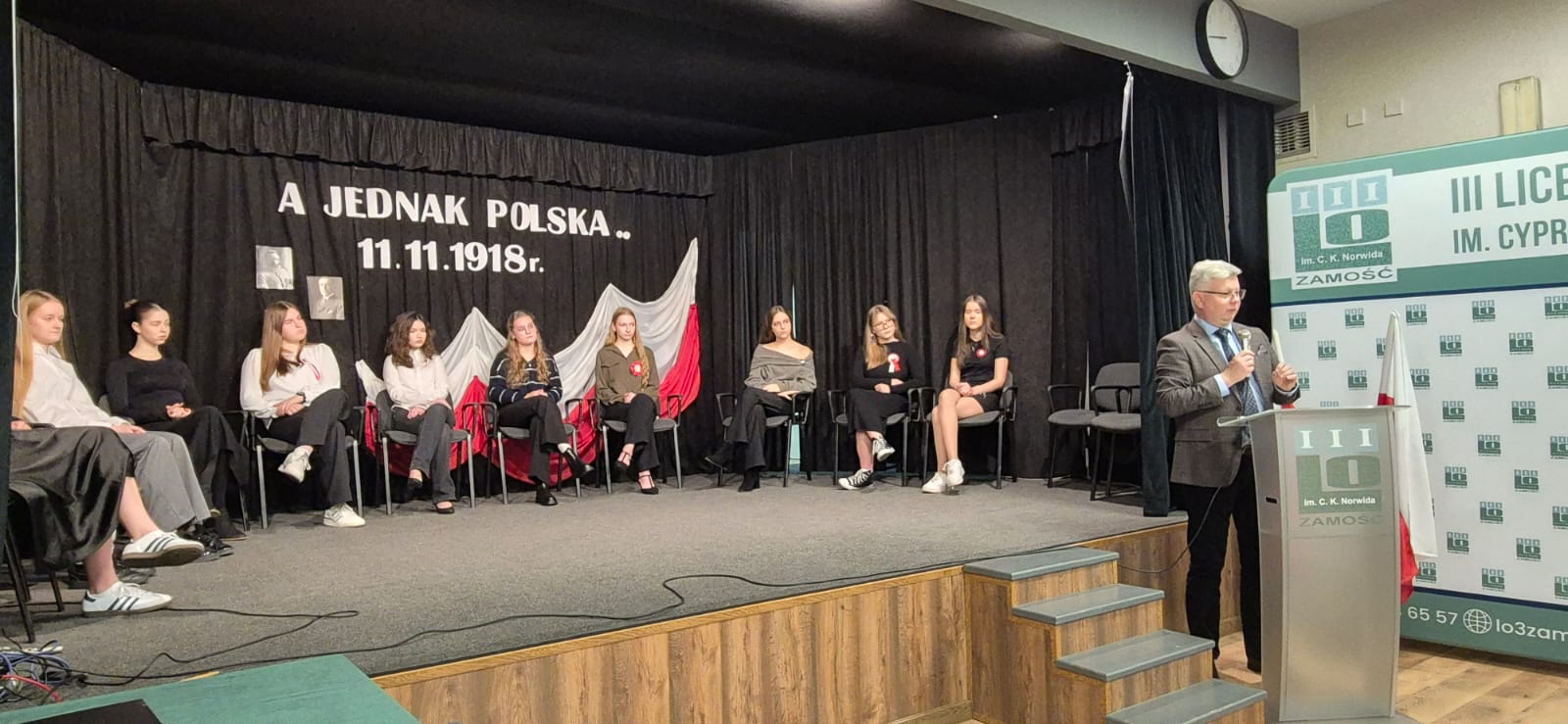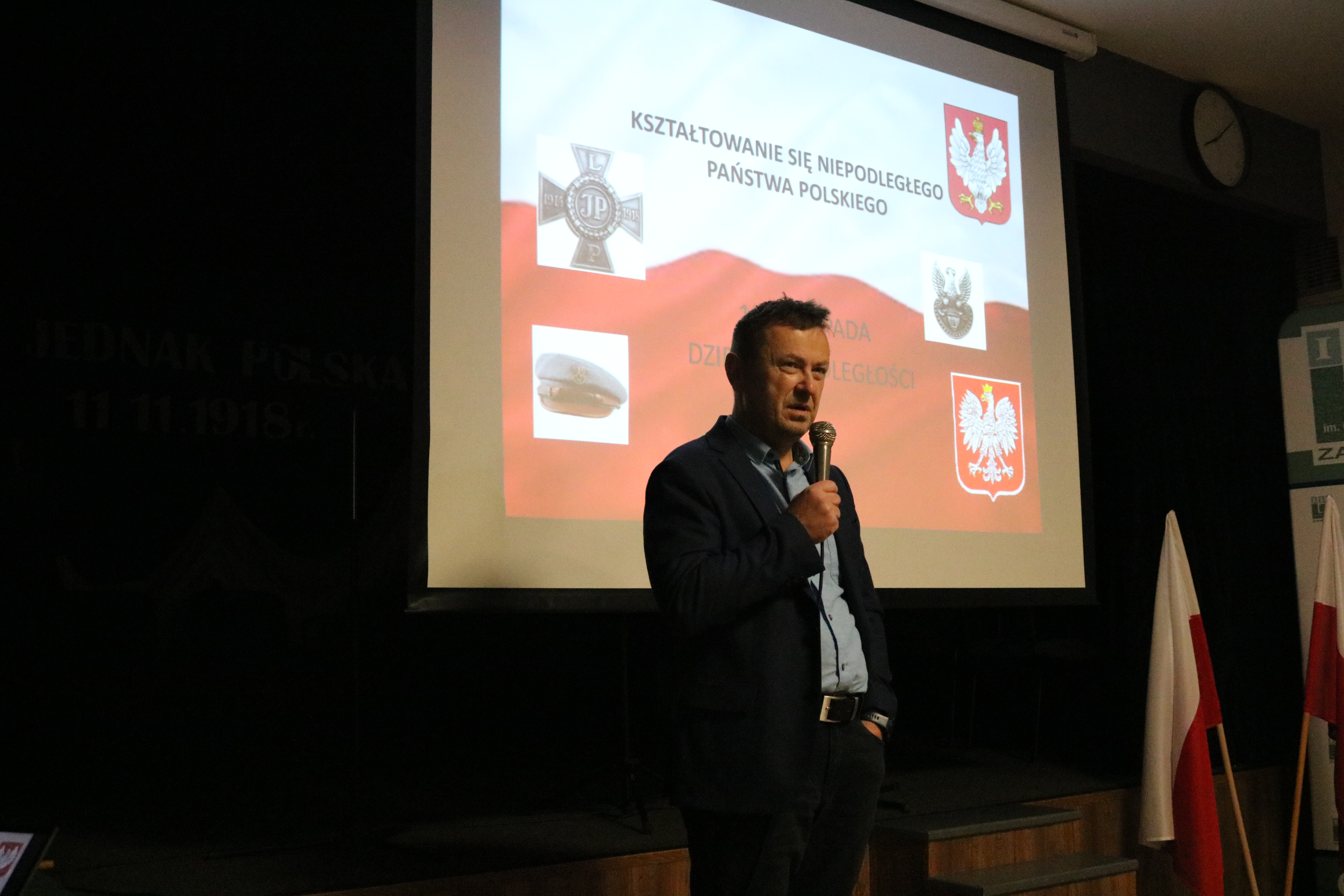 Nasi uczniowie przygotowali z tej okazji część artystyczną wprowadzającą wszystkich w klimat historycznej refleksji. Następnie odbył się wykład prof. dr hab. Roberta Litwińskiego, pracownika naukowego Uniwersytetu Marii Curie Skłodowskiej w Lublinie, gościa honorowego uroczystości, który w ciekawy sposób przybliżył uczniom tematykę niepodległości i walki o wolność Polski.