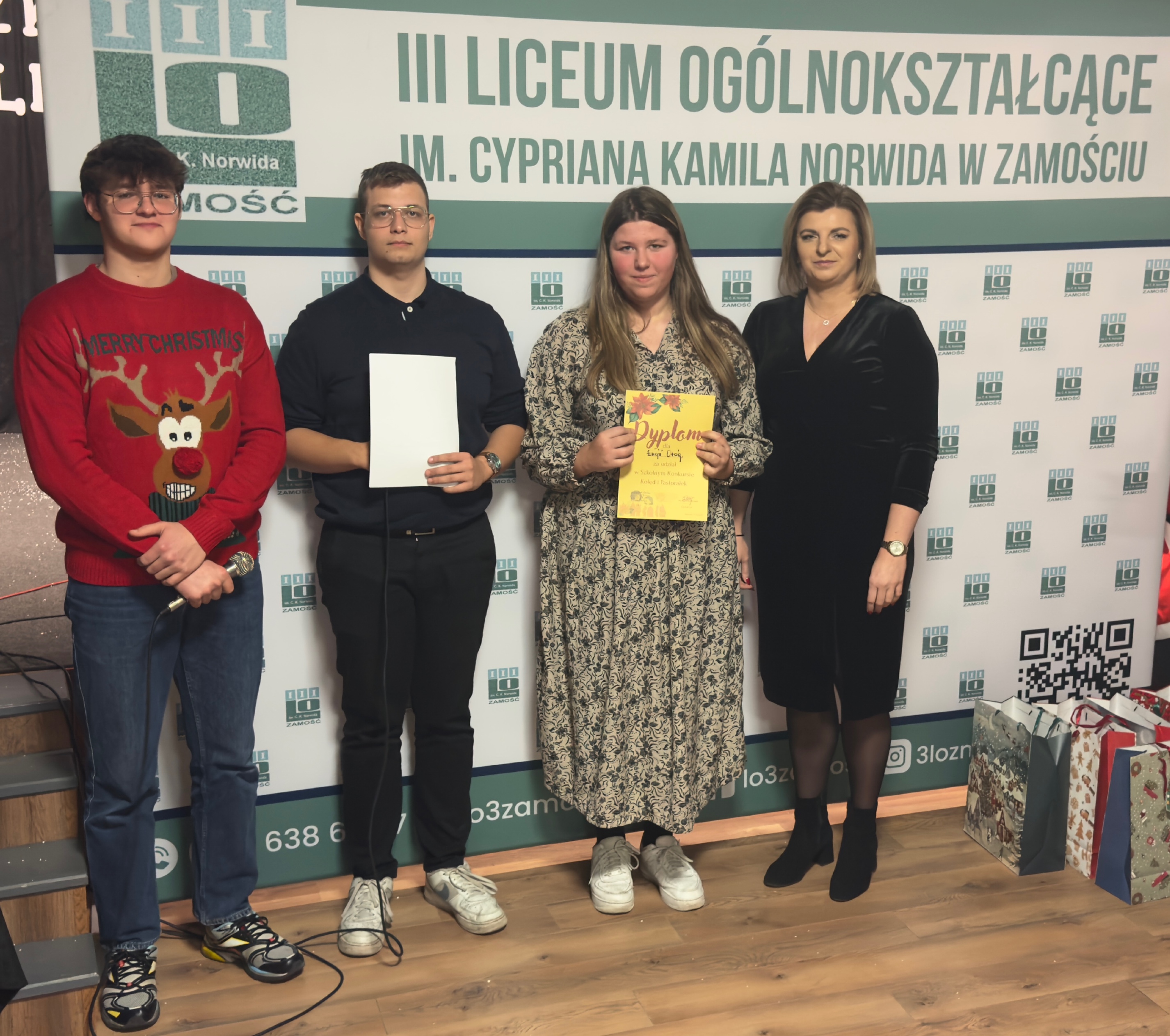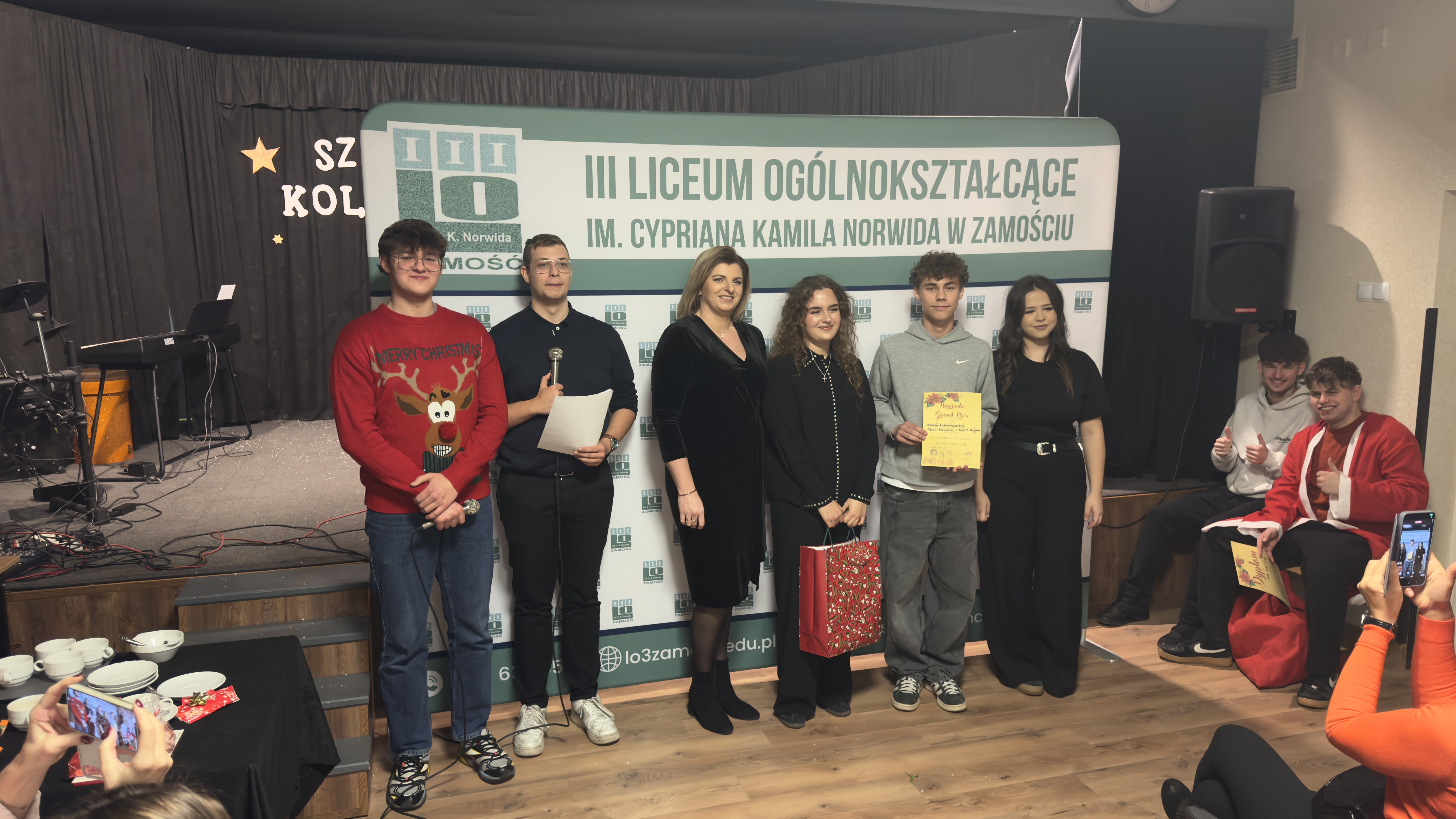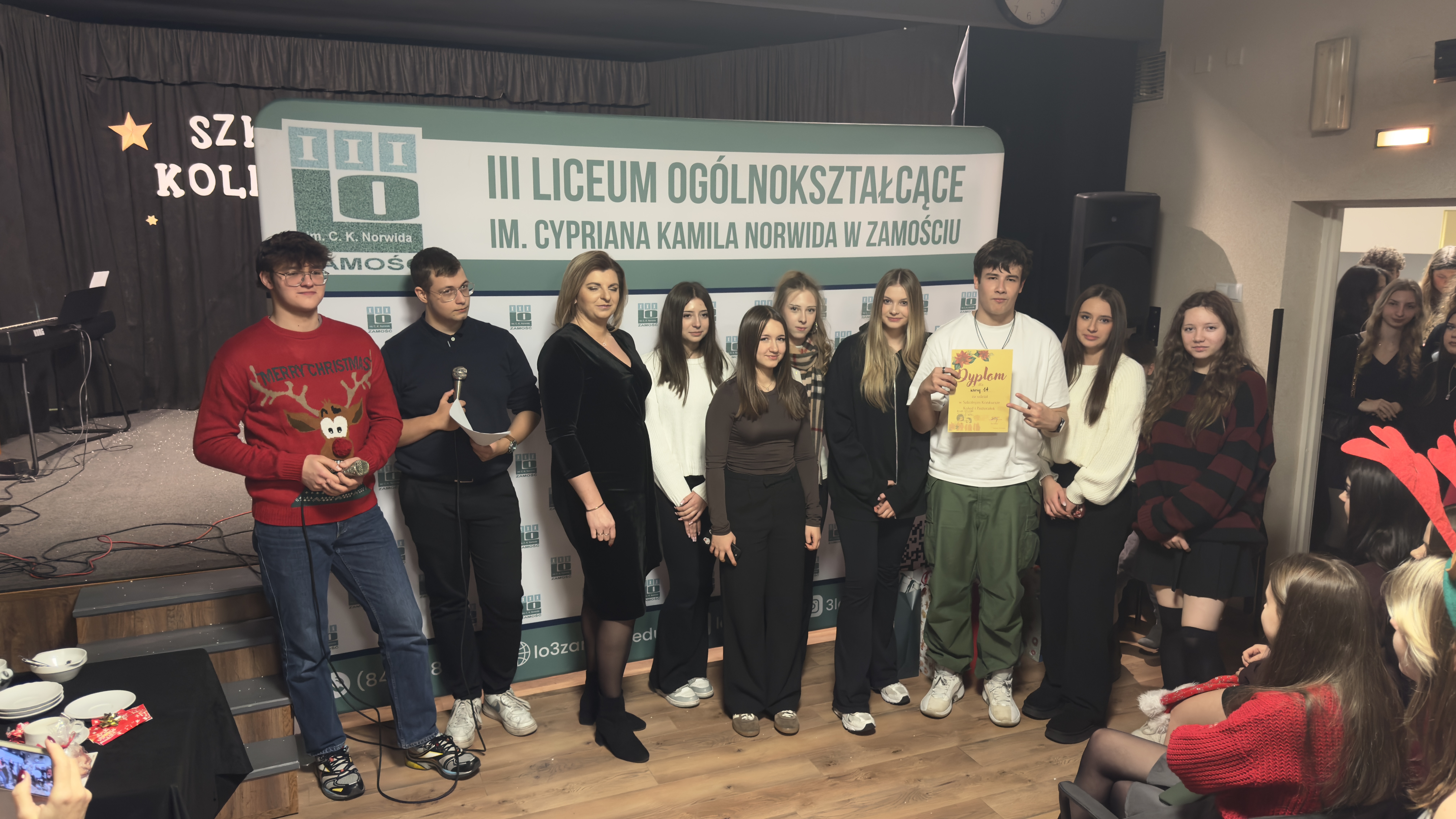 17 grudnia 2025 r. w sali teatralnej szkoły uroczyście wręczono nagrody laureatom konkursów językowych z angielskiego, hiszpańskiego i niemieckiego.