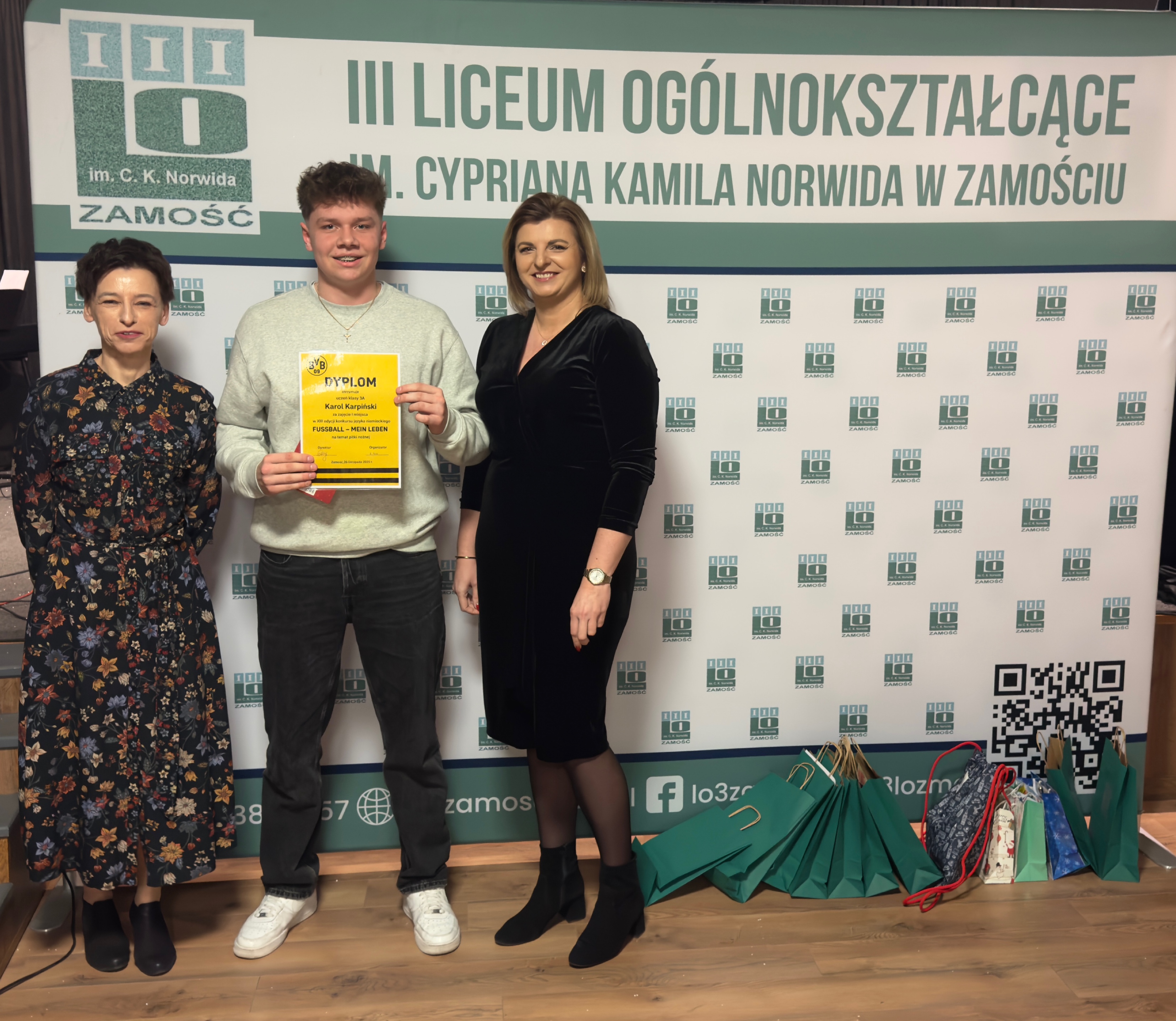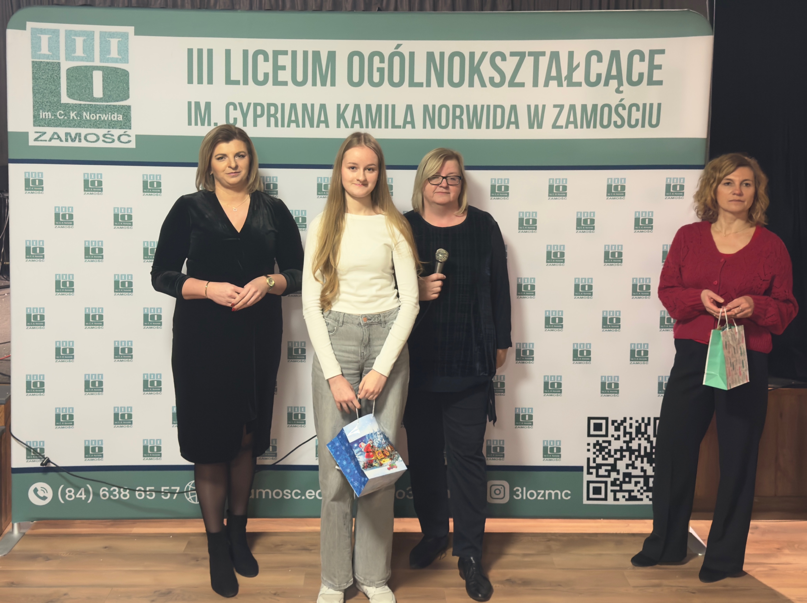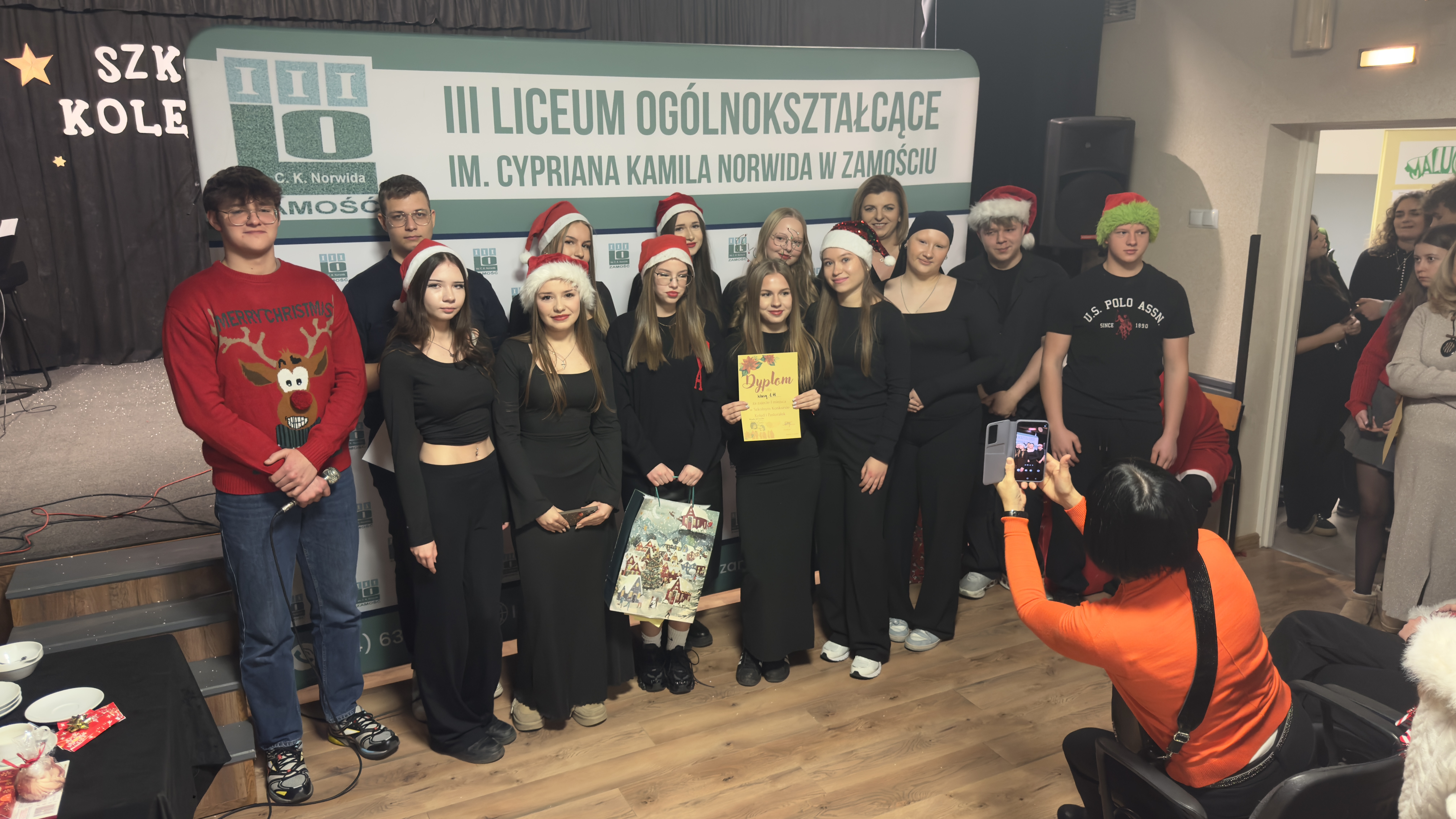 17 grudnia 2025 r. w sali teatralnej szkoły uroczyście wręczono nagrody laureatom konkursów językowych z angielskiego, hiszpańskiego i niemieckiego.