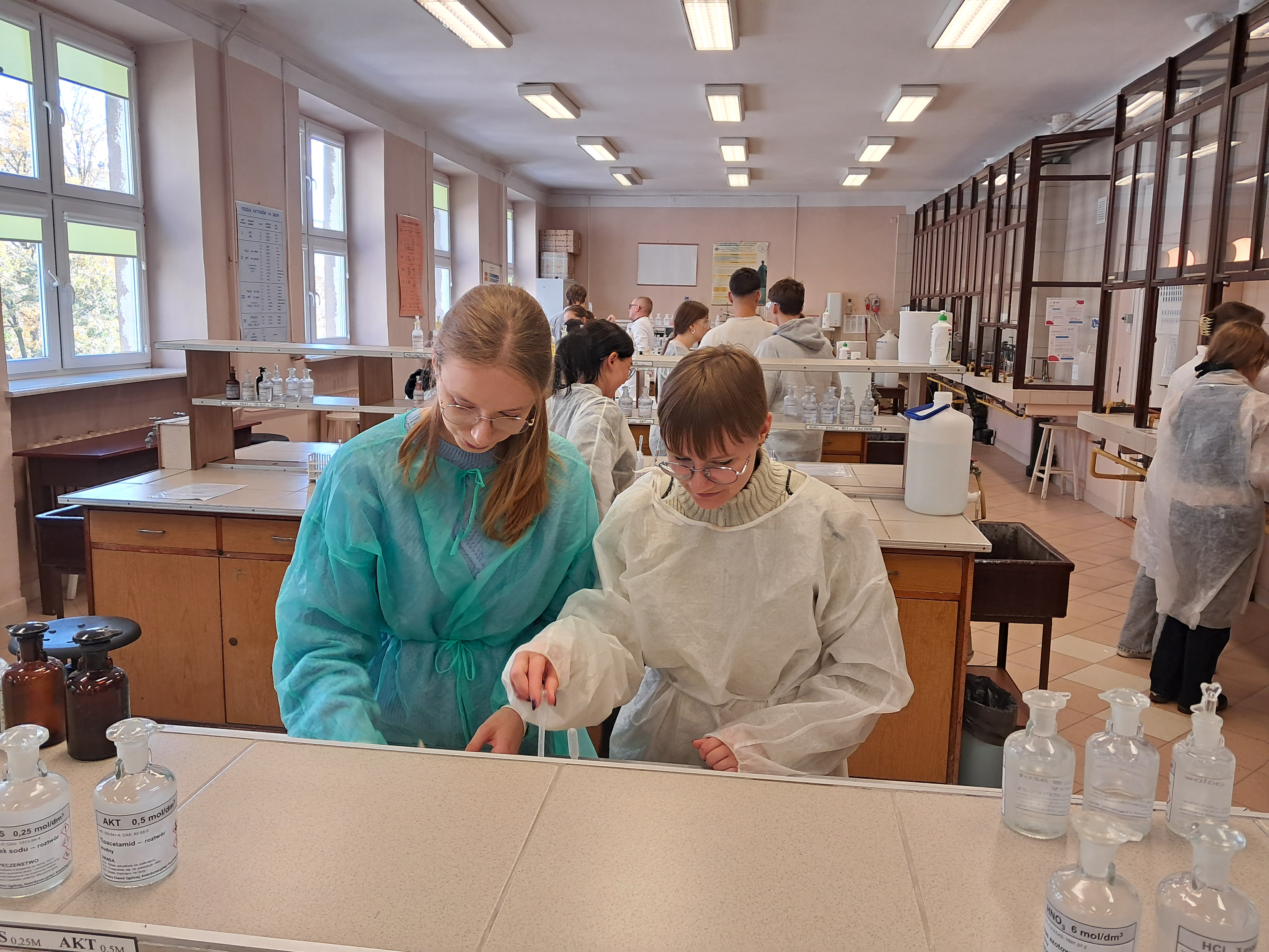 Po ich zakończeniu wzięli udział w warsztatach chemicznych, obejmujących doświadczenia z zakresu miareczkowania oraz wykrywania jonów metali, co umożliwiło praktyczne zastosowanie wcześniej poznanych zagadnień teoretycznych.