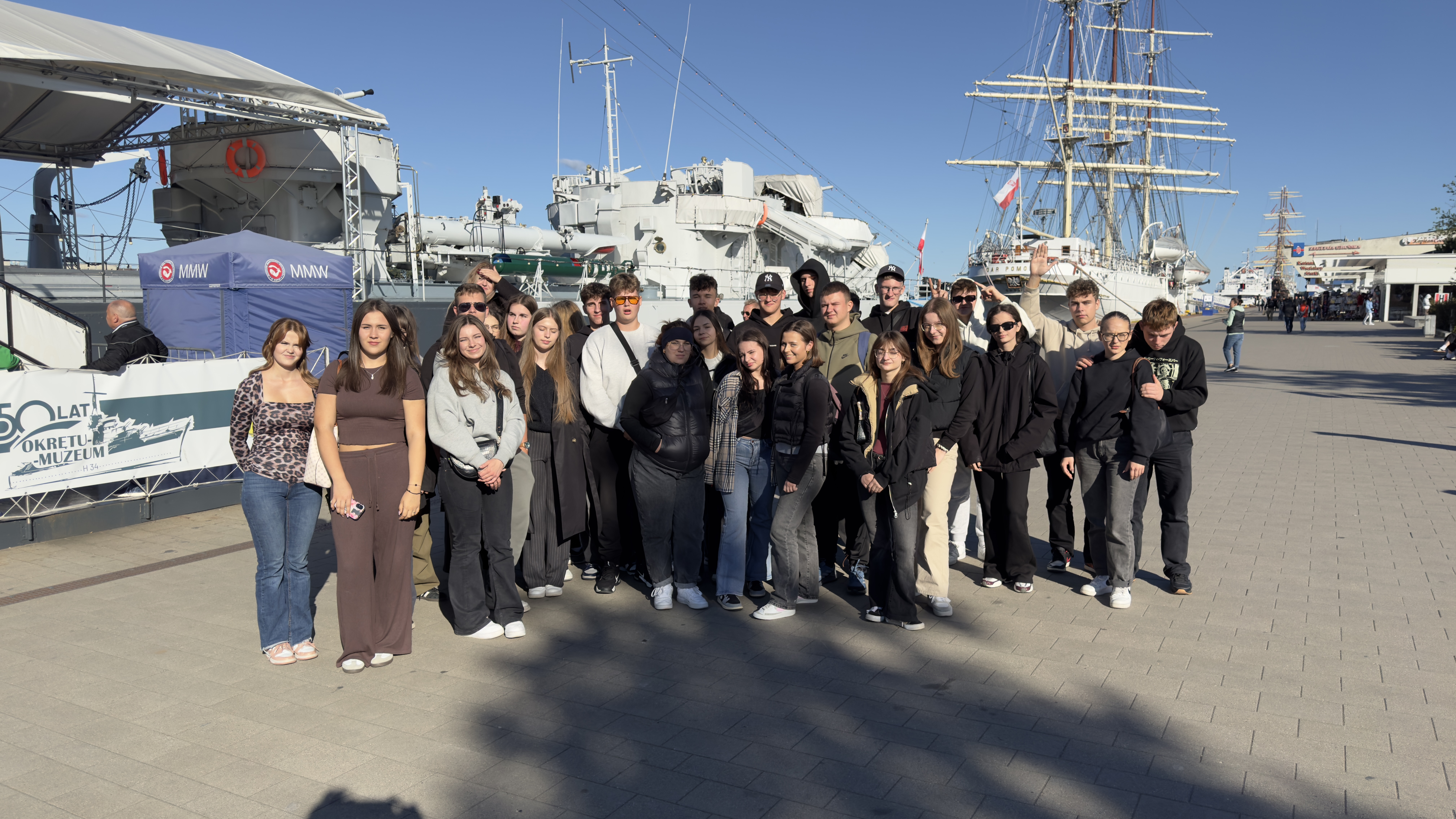 Trzeciego dnia pojechaliśmy do Trójmiasta. W Gdyni weszliśmy na pokład okrętu wojennego Błyskawica. Naszym przewodnikiem na statku był nawigator morski, który podzielił się z nami wieloma ciekawymi informacjami na temat historii tego okrętu. Molo w Sopocie było jak zawsze piękne.