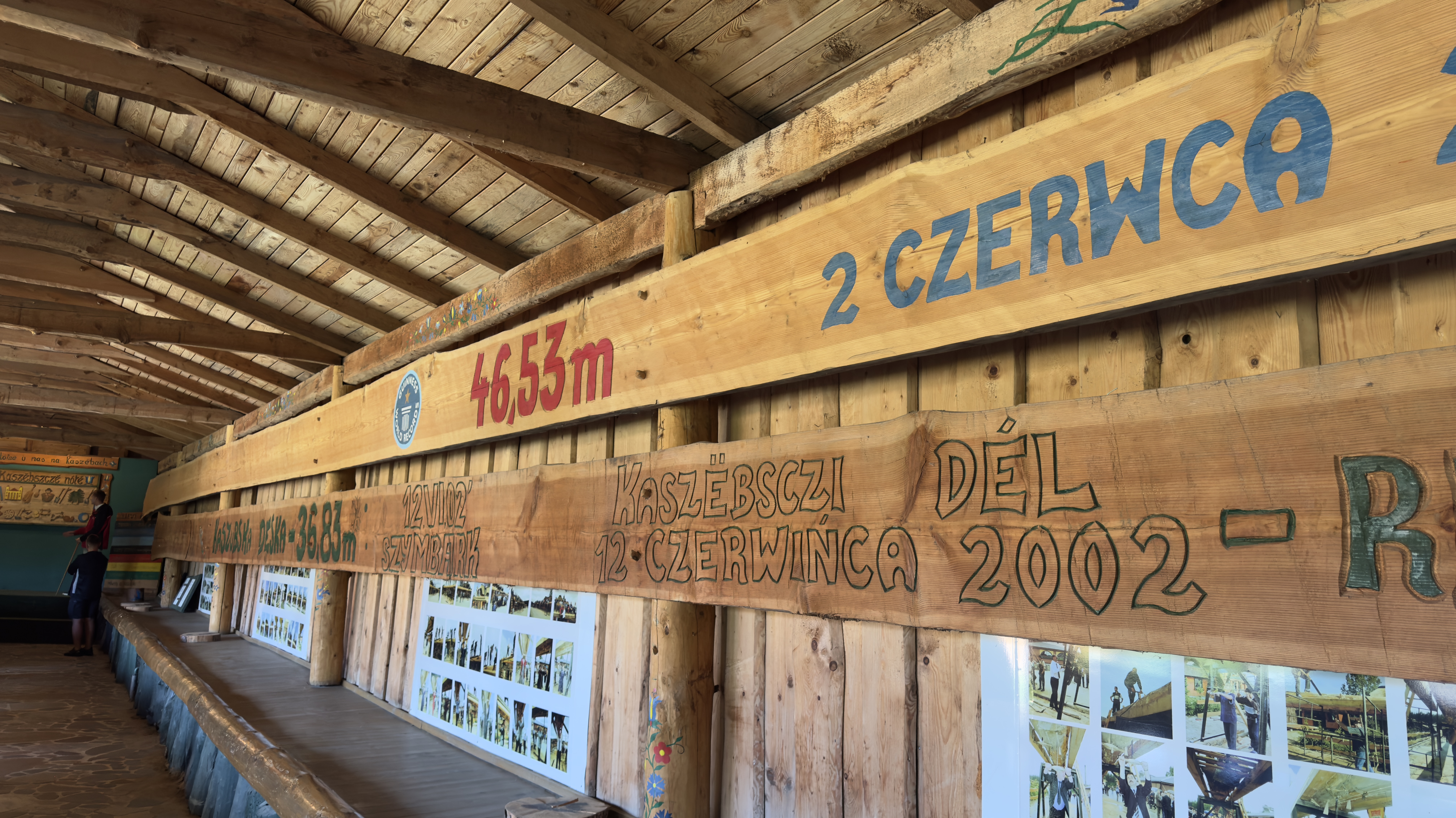 Naszą przygodę zaczęliśmy od skansenu w Szymbarku. Od przewodnika dowiedzieliśmy się o tradycji języka kaszubskiego. Zobaczyliśmy jedno z osiągnięć Kaszub, najdłuższą deskę na świecie, która w 2012 roku ustanowiła nowy rekord Guinnessa. Zwiedziliśmy dom Sybiraka i mieliśmy możliwość zobaczyć replikę łagrów. Przeszliśmy obok niedźwiedzia Wojtka, który walczył podczas drugiej wojny światowej, a następnie udaliśmy się do domu tureckiego z Adampola, miasta w Turcji, założonego na ziemiach wykupionych Adama Jerzego Czartoryskiego. Weszliśmy również do bunkra, w którym został odegrany nalot bombowy, a później przeszliśmy do odwróconego do góry nogami domku z Kalifornii. Na koniec zobaczyliśmy największy fortepian na świecie. Powstał on z okazji dwusetnej rocznicy urodzin Fryderyka Chopina (2010 rok). Dzień zakończyliśmy zwiedzając dworek Józefa Wybickiego, autora hymnu Polski.
